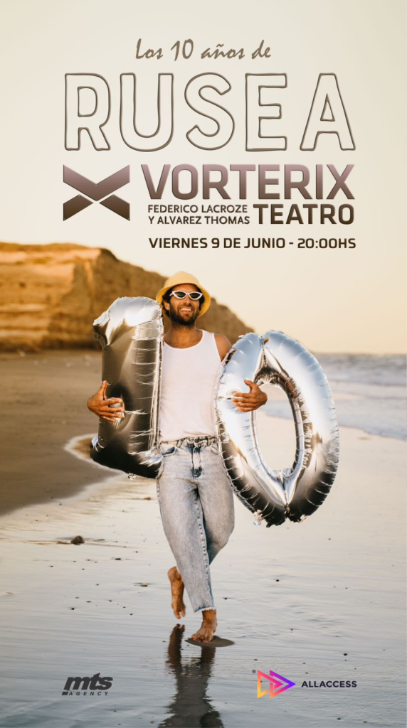 | DESPUÉS DE UN 2022 CON SHOWS FULL EN LA TANGENTE Y NICETO CLUB, QUE YA SE PUEDEN VER COMPLETOS EN YOUTUBE, RUSEA SE REENCUENTRA CON SU PÚBLICO DE BUENOS AIRES PARA VIVIR UNA GRAN FIESTAEL VIERNES 9 DE JUNIO LAS CANCIONES DE RUSEA CELEBRAN SUS 10 AÑOS EN EL TETARO VORTERIXUNA VERDADERA PARTY PARA TODOS LOS AMIGOS, COMPAÑEROS Y TODOS LOS QUE SE QUIERAN SUMAR A ESTE HERMOSO VIAJE |