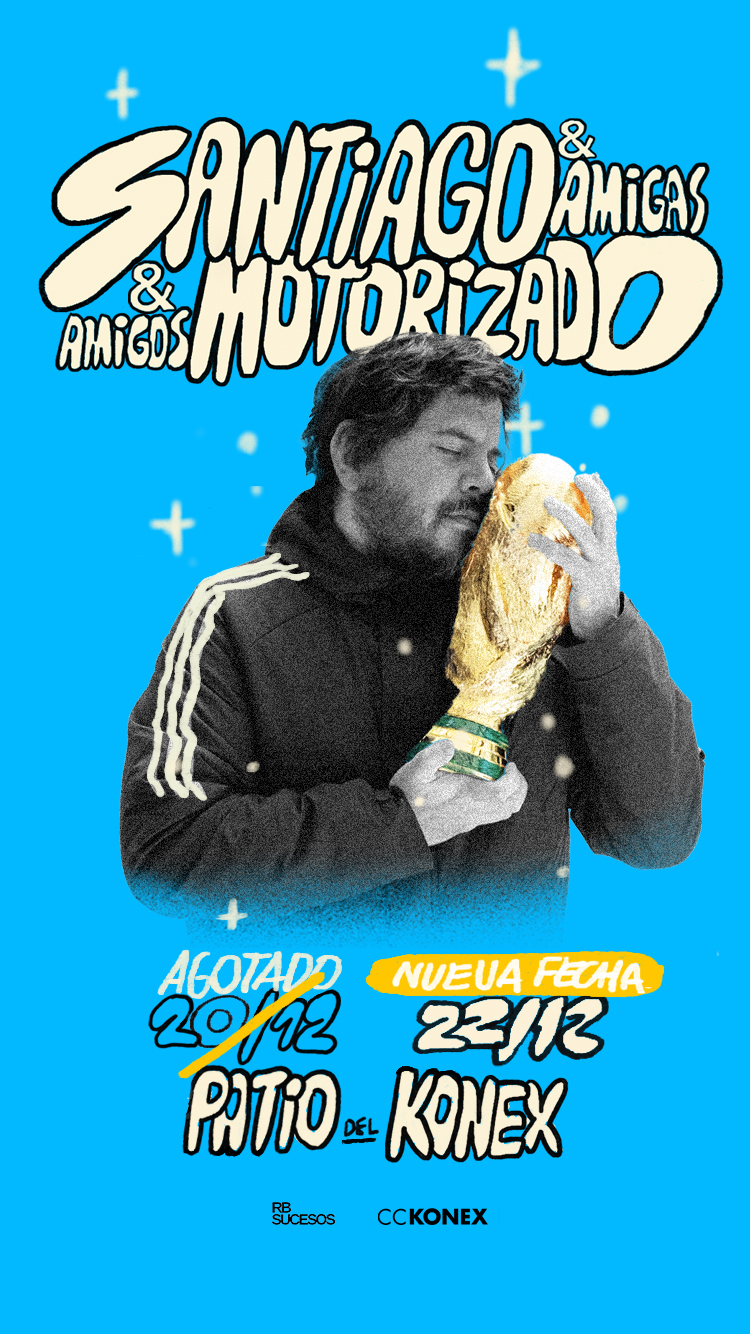 Santiago Motorizado, líder y bajista de la icónica banda argentina «El Mato a un Policia Motorizado», anunció un segundo show en Ciudad Cultural Konex, luego de agotar en pocos días la primera fecha -miércoles 20 de diciembre-. El segundo show será el viernes 22 de diciembre, las entradas se pueden conseguir en https://entradas.cckonex.org/event/santiago-motorizado