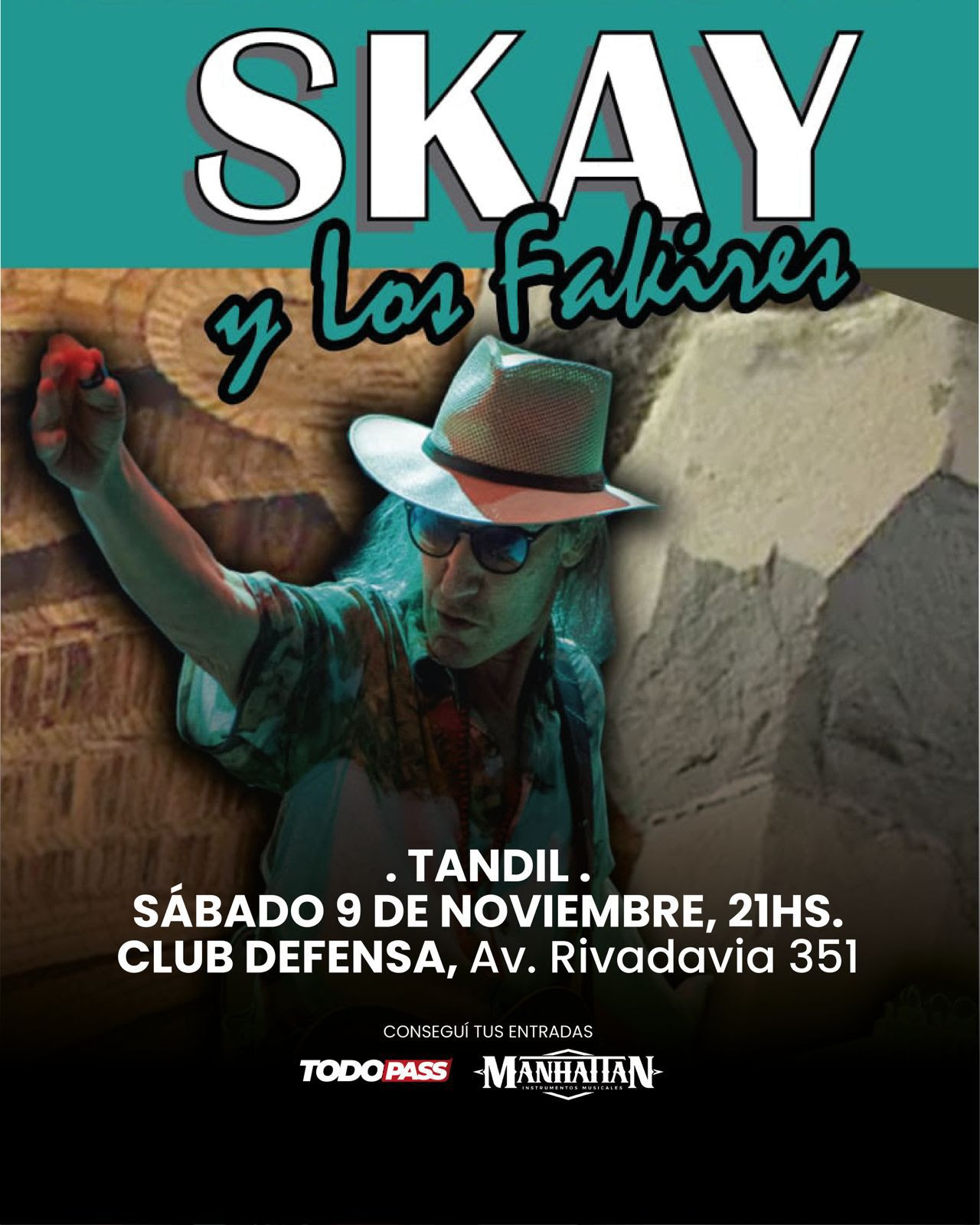 Uno de los shows más esperados, El regreso de Skay y los Fakires a la ciudad de Tandil tendrá lugar el sábado 9 de noviembre – 21hs – en el Club Defensa (Av. Rivadavia 351).