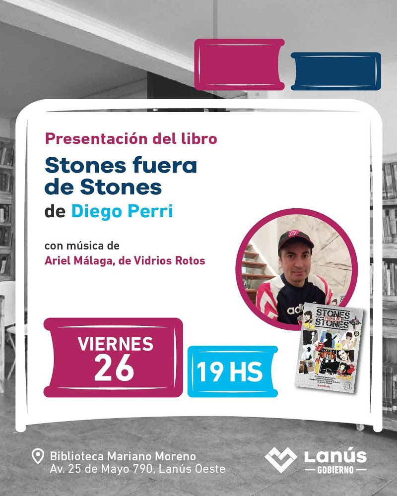 El próximo viernes 26 de septiembre a partir de las 19 hs, se realizará la presentación del libro Stones Fuera de Stones. El autor contará el concepto, contenido, secciones e idea de la obra y responderá inquietudes de los asistentes.