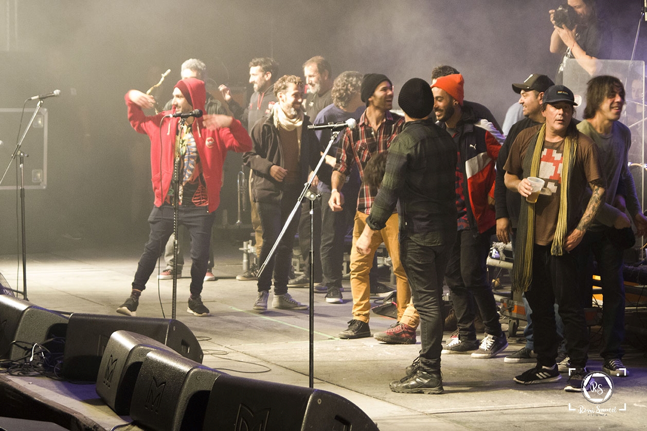 De nuevo un par de temas de Discopático, «Para siempre» y «El paraíso», merecido descanso para los cuerpos que buscaban agua al borde del escenario donde estaban repartiendo. Pero una vez más, como buscando un juego de contrastes constantes entre temas nuevos y clasicasos empieza a sonar la guitarra despacito, tranquila, tingui tingui, tingui tingui. Nadie puede «Zafar» cuando suenan esos acordes, y aunque el ritmo sea lento las gargantas se potencian para cantar a coro «soy de la ciudad, con todo lo que ves».