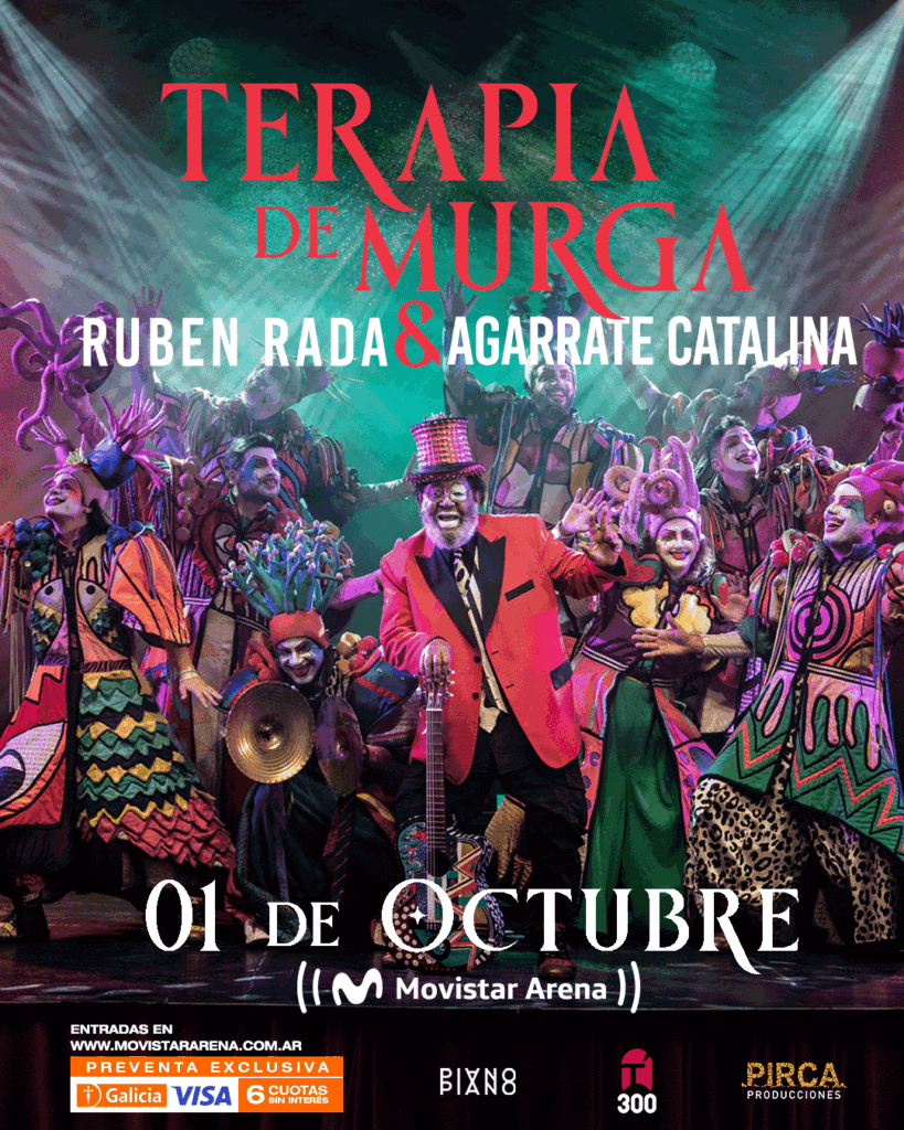 Después de agotar tres funciones en el Auditorio Nacional del Sodre y deslumbrar a miles en la Plaza de Toros de Colonia, Rubén Rada y Agarrate Catalina cruzan el charco para presentar “Terapia de Murga”, un espectáculo inédito que reúne por primera vez en un mismo escenario al legendario músico uruguayo y a la murga más reconocida de Latinoamérica.