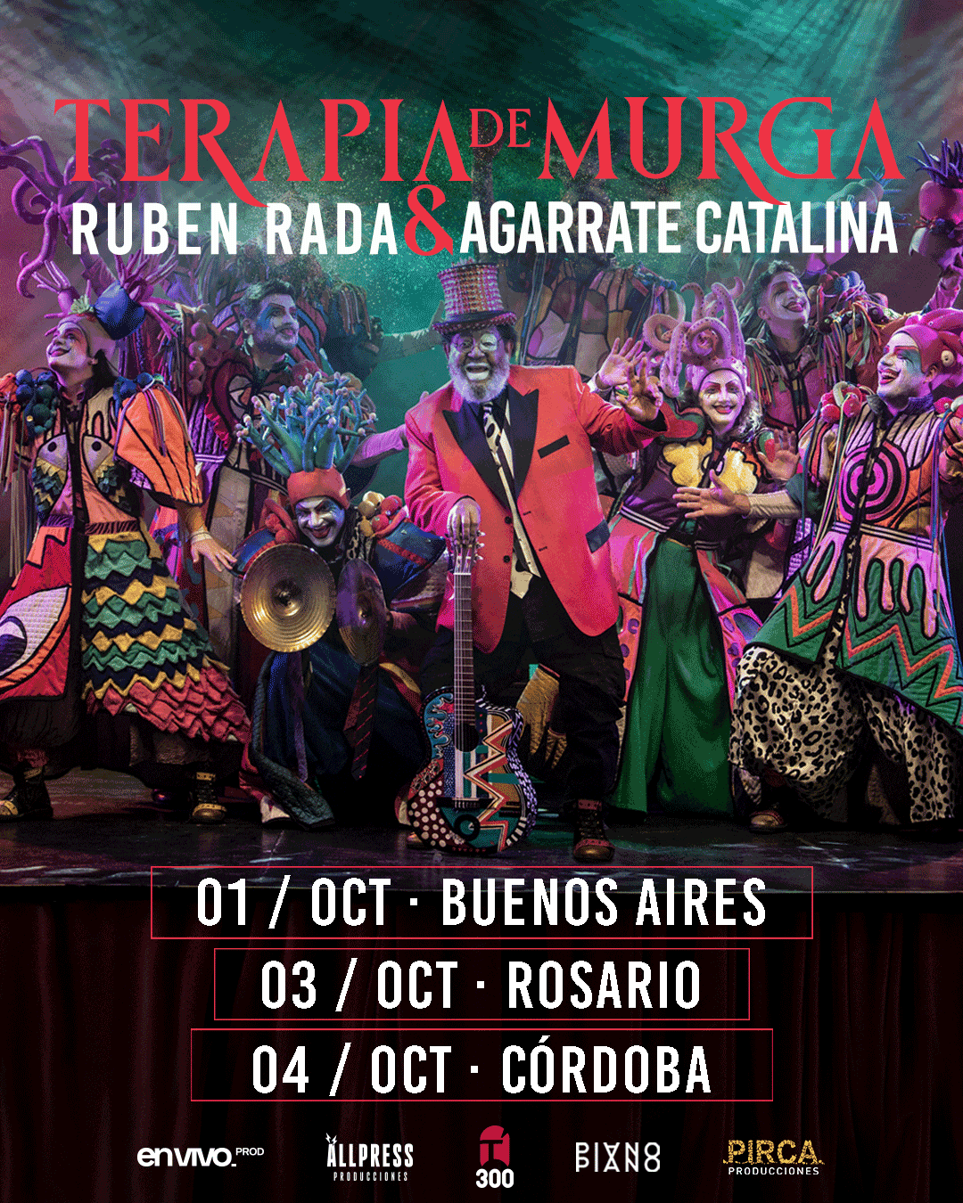Luego de haber compartido escenario en varias oportunidades se presentan por primera vez con un show en conjunto: TERAPIA DE MURGA Ruben Rada, una de las leyendas de la música uruguaya y Agarrate Catalina, la reconocida murga que ha recorrido el mundo llevando al género como bandera, se juntan para transitar y versionar temas de ambos, en un show que promete ser único e inolvidable Rada y La Catalina hacen Terapia de Murga