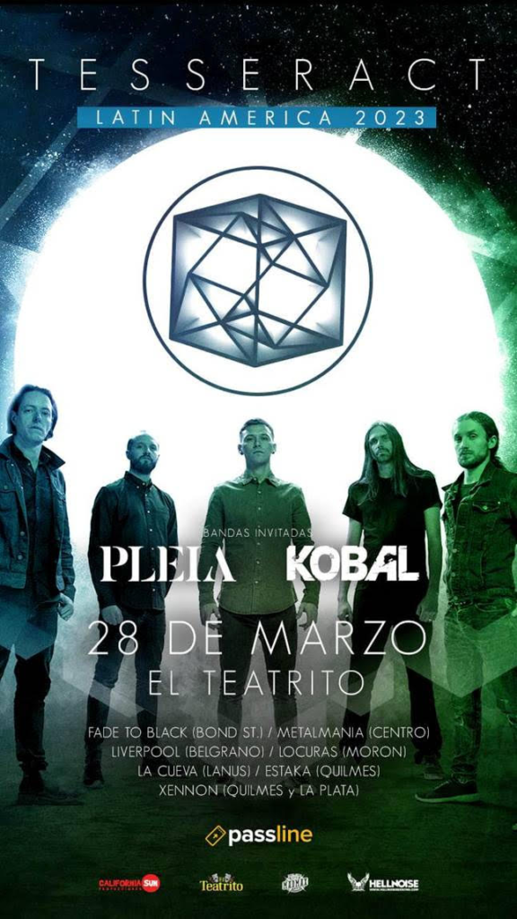 La banda británica Tesseract, una de las más importantes del nuevo metal progresivo se estará presentando por primera vez en Argentina, el próximo Martes 28 de Marzo en “El Teatrito”, Sarmiento 1752, C.A.B.A., para presentar su último trabajo discográfico titulado “Portals” y realizar un repaso por toda su discografía.
