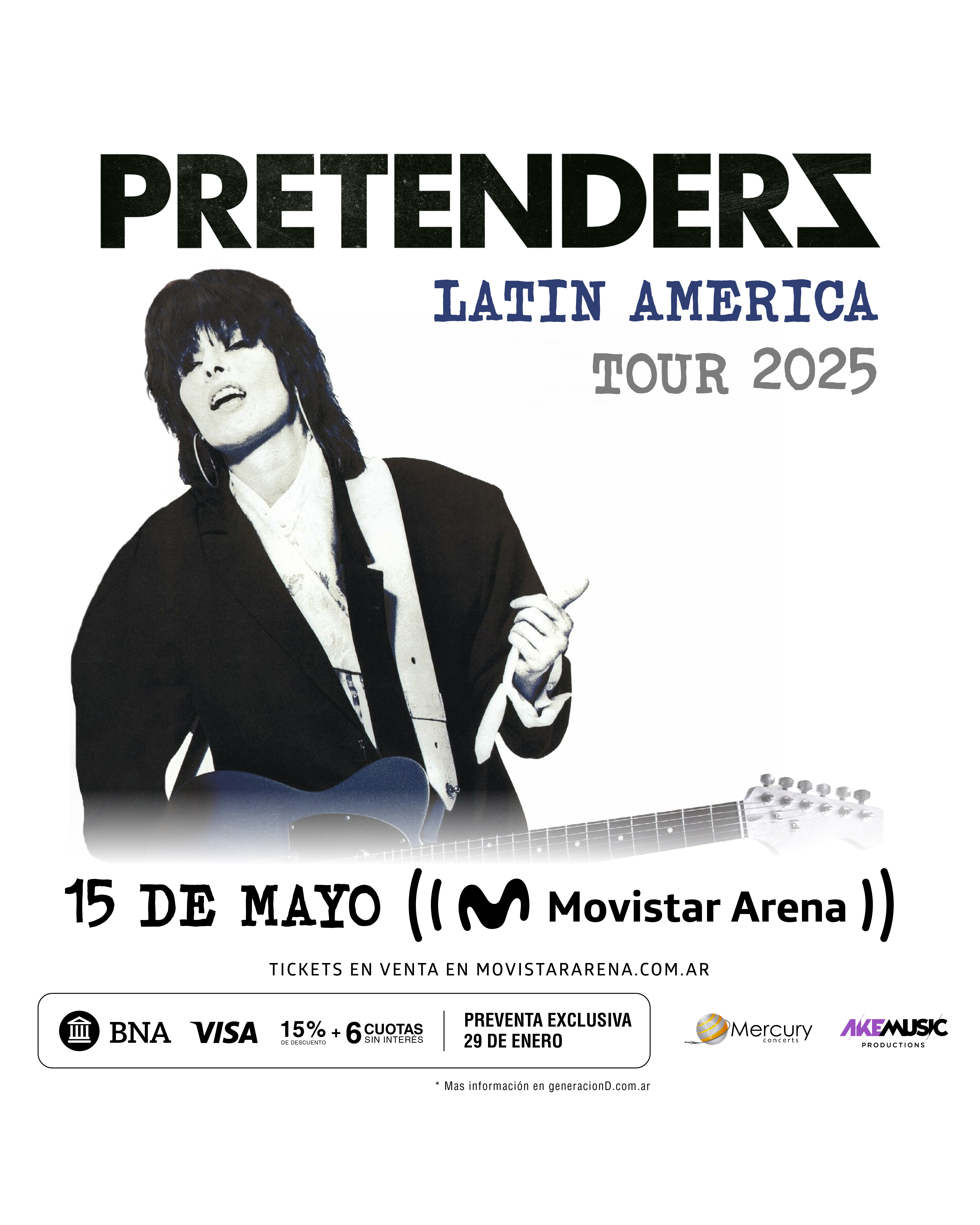 The Pretenders, ícono indiscutible del rock y el espíritu underground, confirma su tan esperado regreso a Buenos Aires el próximo 15 de mayo de 2025 en el Movistar Arena, como parte de su nueva gira mundial. Liderada por la incombustible Chrissie Hynde, miembro del Salón de la Fama del Rock & Roll, la banda promete una noche inolvidable de clásicos y nuevas composiciones. Formada en 1978 en Londres, The Pretenders marcó un antes y un después en la escena musical con su estilo único que mezcla punk, rock y new wave. A pesar de los desafíos que enfrentaron, incluyendo la pérdida de dos de sus integrantes originales, Chrissie Hynde ha sabido reinventar al grupo y mantener su esencia durante más de 40 años. Con 15 álbumes de estudio en su carrera, los temas de The Pretenders han trascendido generaciones, consolidando su lugar en la historia del rock. Canciones como «Brass in Pocket», «I’ll Stand By You», y «Back on the Chain Gang» continúan siendo referentes del género. El show en el Movistar Arena será una oportunidad única para vivir la energía y el talento de una banda que, liderada por Hynde, sigue desafiando las convenciones y conquistando nuevos escenarios.