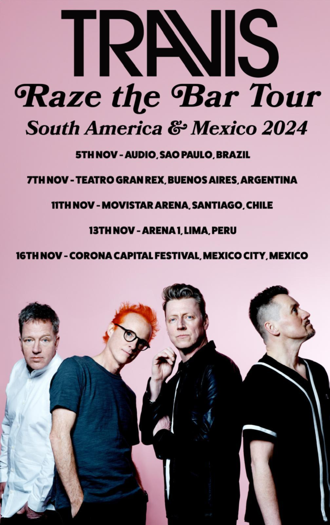 Tras el lanzamiento de su décimo álbum de estudio “LA Times”, la icónica banda escocesa TRAVIS anuncia su gira por Latinoamérica, en donde interpretará sus canciones clásicas y las favoritas de los fans repasando su extensa carrera.