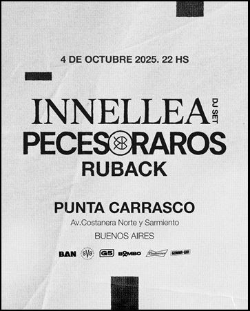 El próximo sábado 4 de octubre de 2025 en Punta Carrasco, el productor alemán Innellea y la banda argentina Peces Raros compartirán escenario por primera vez en un espectáculo que promete una experiencia inolvidable. Dos mundos sonoros se cruzan en una noche única donde la electrónica de vanguardia, el poder del rock y la búsqueda emocional se fusionan para crear algo nunca antes visto.