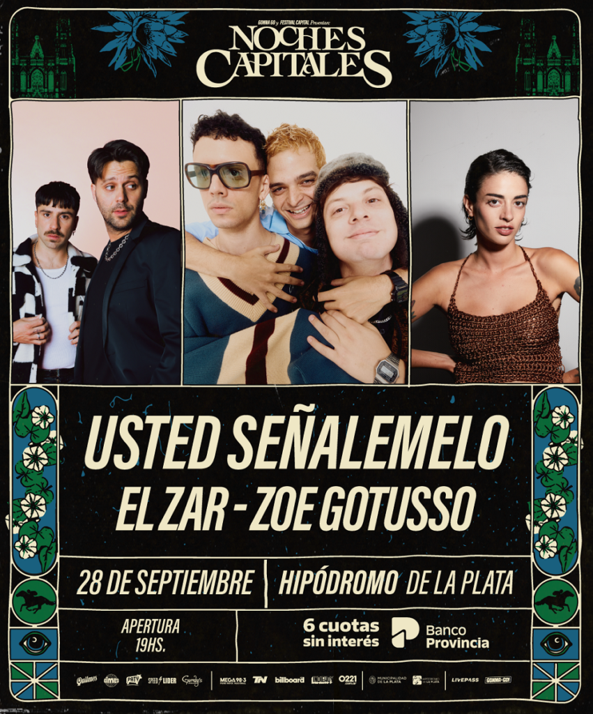 GONNA GO y FESTIVAL CAPITAL presentan USTED SEÑALEMELO, EL ZAR y ZOE GOTUSSO en NOCHES CAPITALES, ELIGIENDO LA NOCHE PLATENSE PARA PRESENTAR NUEVAS CANCIONES Y SU INAGOTABLE TALENTO.