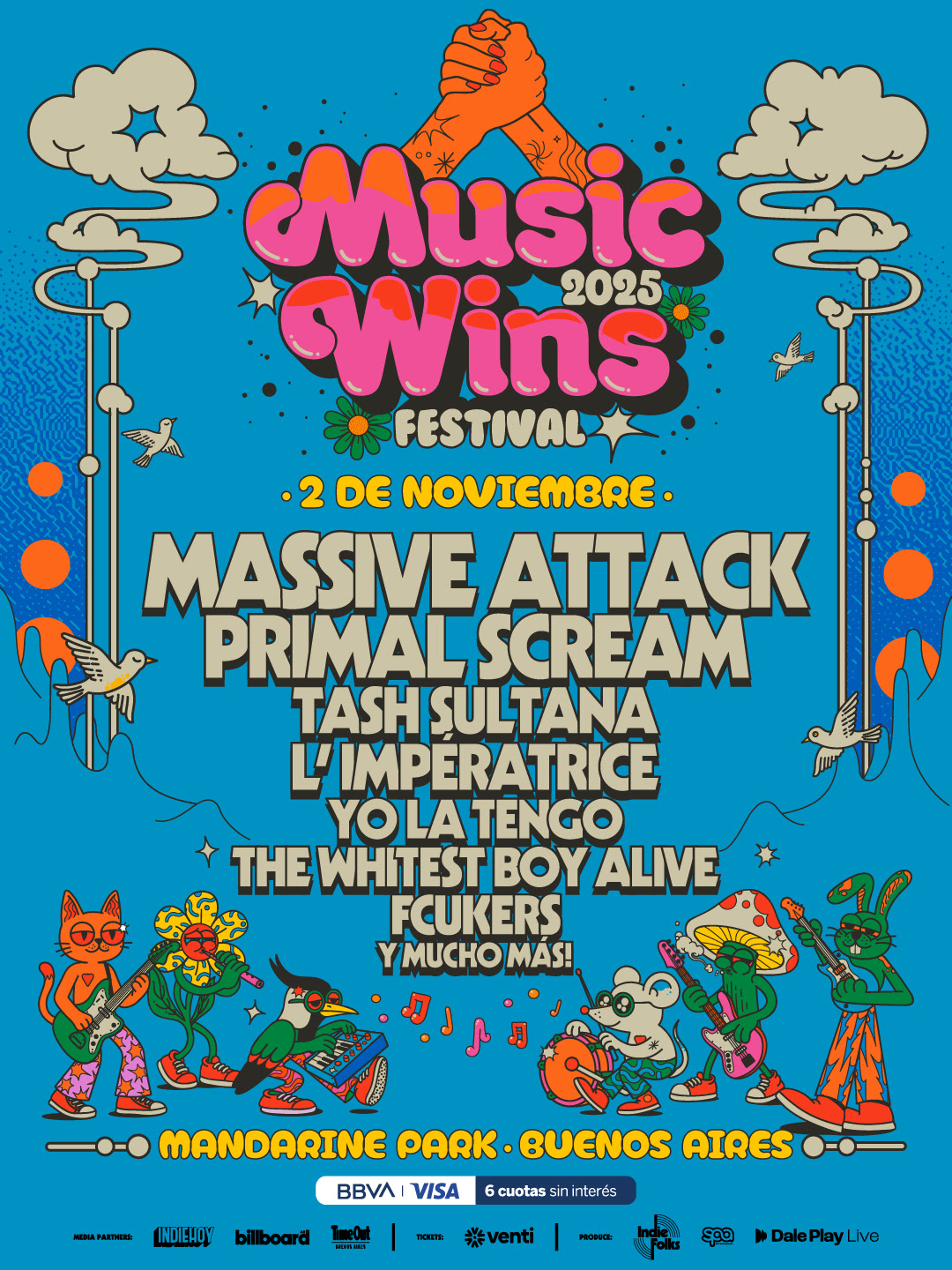 El festival más querido por la escena independiente argentina está de regreso. La cuarta edición del Music Wins Festival tendrá lugar el domingo 2 de noviembre en Mandarine Park y contará con un line-up excepcional, liderado por dos gigantes del sonido británico: Massive Attack y Primal Scream. Las entradas estarán disponibles a través de Venti en las siguientes fechas: