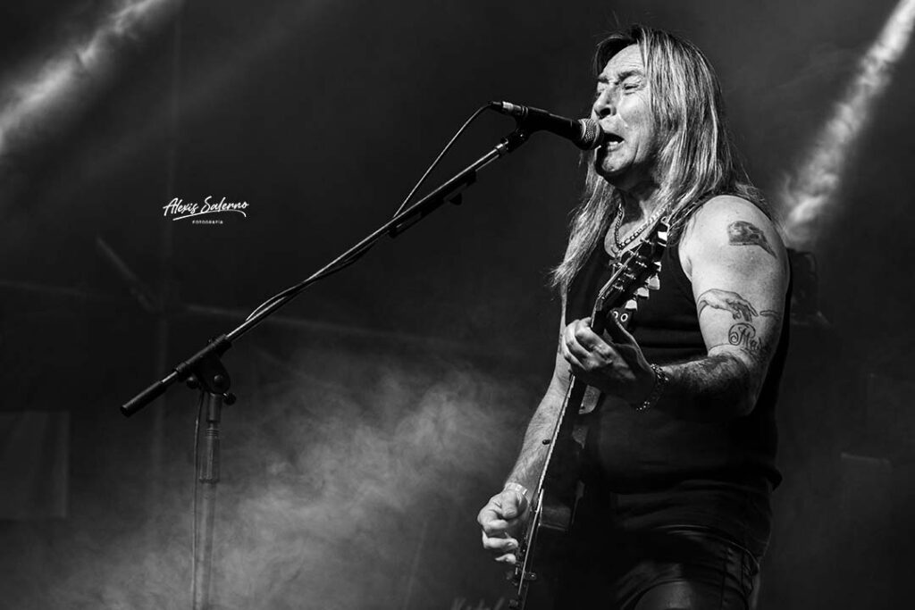 Comienzan a correr las canciones y el público no para de poguear. Se lo extrañaba a Ricardo por estos lares. Un público trabajador, respetuoso y familiar. Suenan entre otros “Convide rutero”, “Cautivo del sistema”, “Toro y pampa”, entre tema y tema conversa con el público. De manera recurrente hablara de que esta grande, que quizás sea su última visita. En otro momento pedirá aplausos para la banda que suena increíble y comentara “Acaso no los van a venir a ver cuando yo ya no este?”. Pero sin embargo desarrollo una presentación excelente. Nos hablara de Facundo Cabral, de Larralde, de la patria y del sentir nacional, de Malvinas y de la lucha que hay que seguir contra quienes atentan contra la patria.